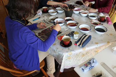 さて、布花レッスンで生徒さん皆様の制作風景です♪