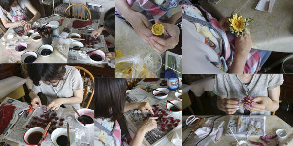 布花は、すべて手づくりする布の花。